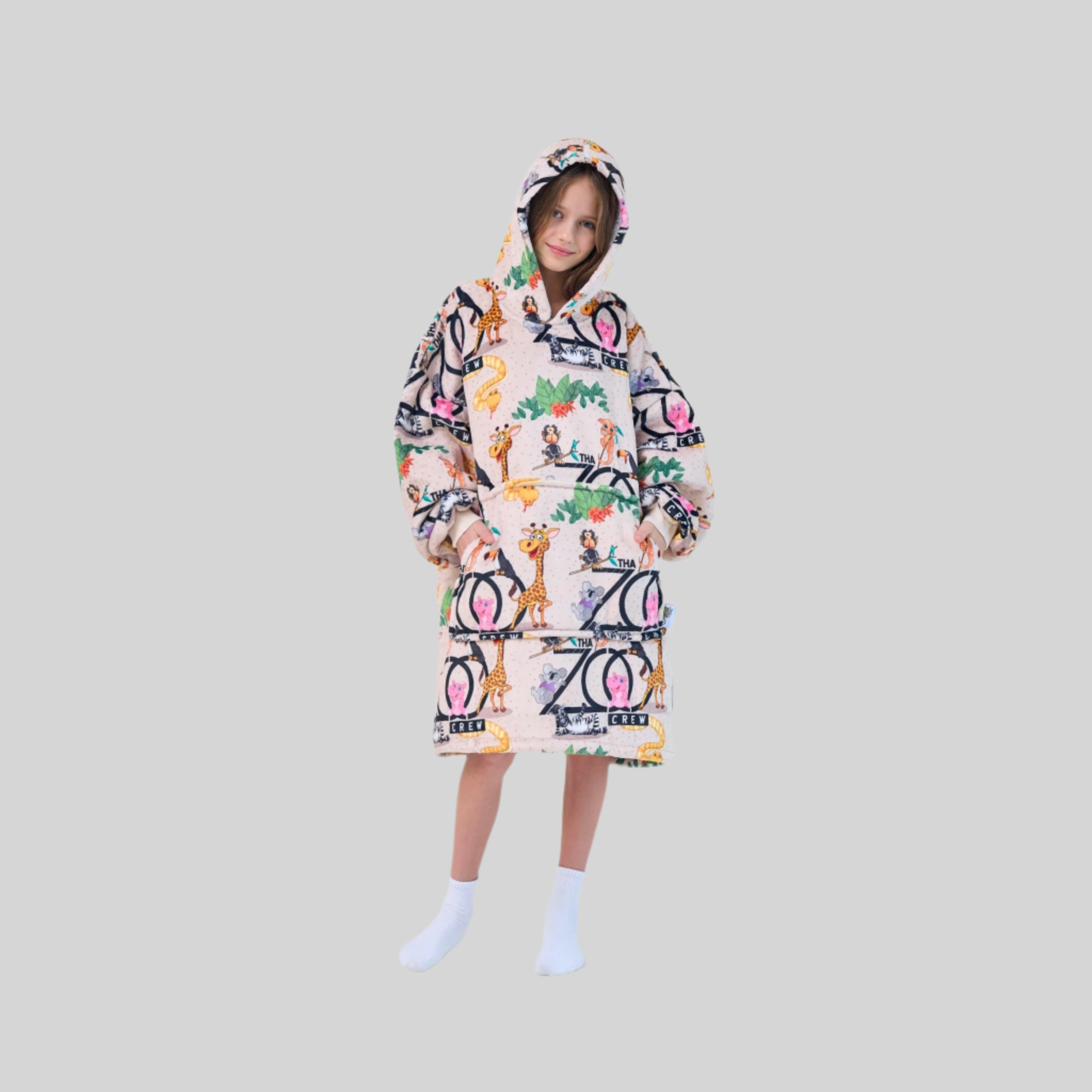 Let your little explorer go wild with the 'Zoo Crew' Kids' Haven! This playful wearable blanket is packed with friendly zoo animals and crafted with ultra-soft fleece on the outside and cozy sherpa fleece inside. Itโs the perfect kids' hooded blanket for playtime, bedtime, or snuggling on the couch. ๐พ
