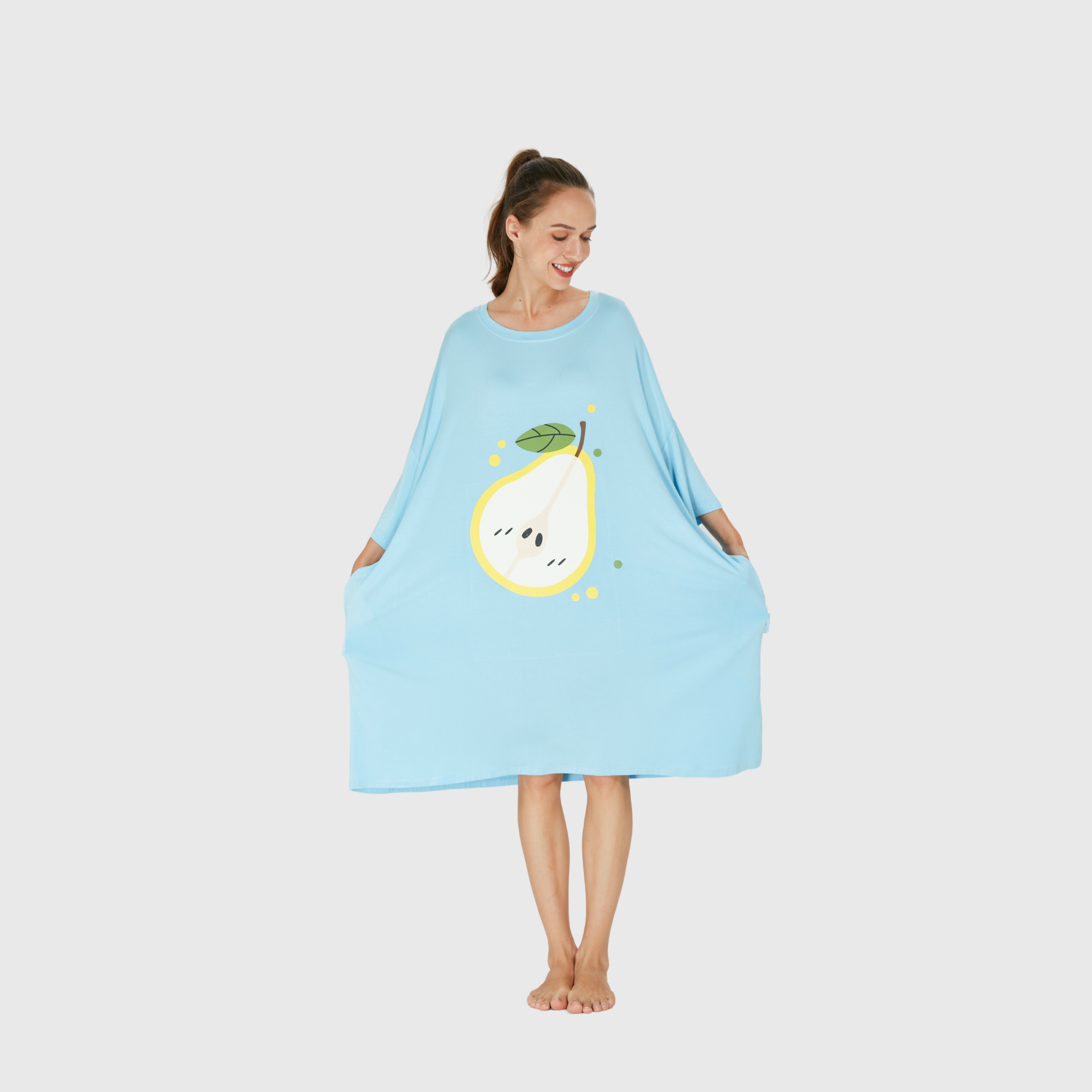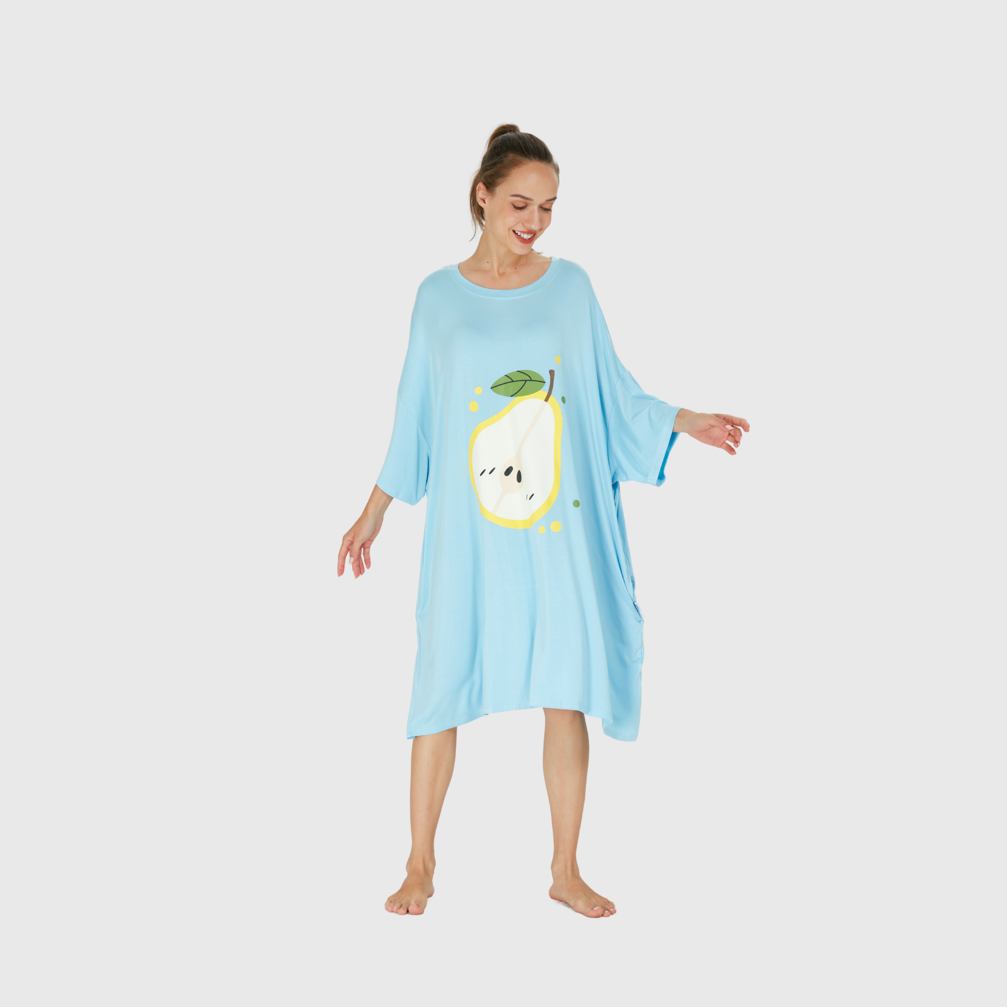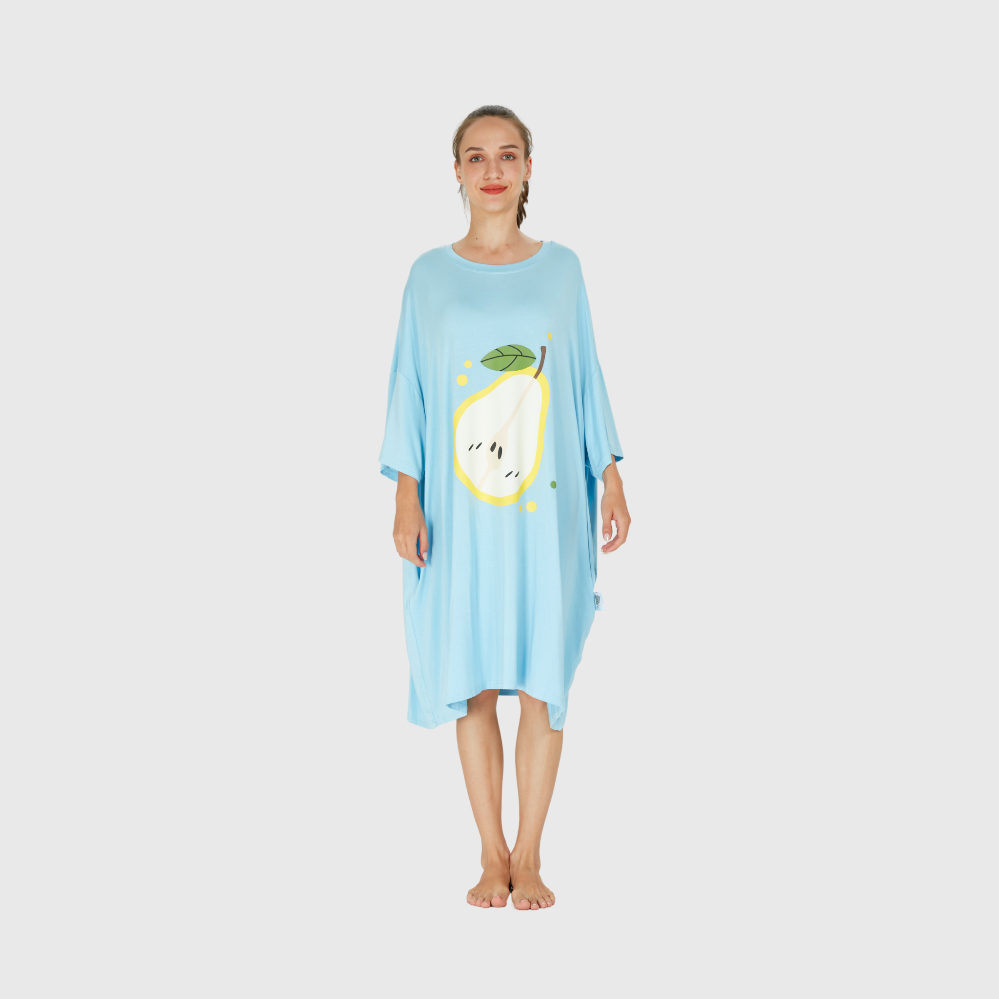 Unwind in style with the 'Light Blue Pear Sleep Tee' from Hoodie Haven! This oversized tee features a playful pear design, blending comfort and charm in one cozy package—perfect for lounging or drifting off to sleep. 🍐
